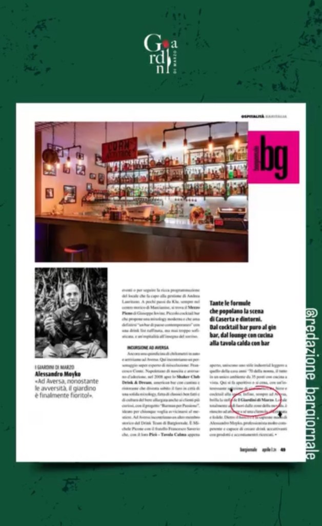 Il riconoscimento su Bargiornale non è solo nostro. È un segnale forte di come Aversa e i suoi dintorni stiano diventando protagonisti in Campania nel panorama dei locali innovativi, cocktail bar inclusivi e spazi dove la miscelazione di qualità si unisce a una narrazione territoriale.